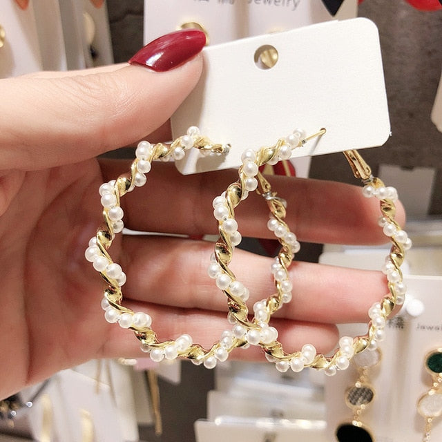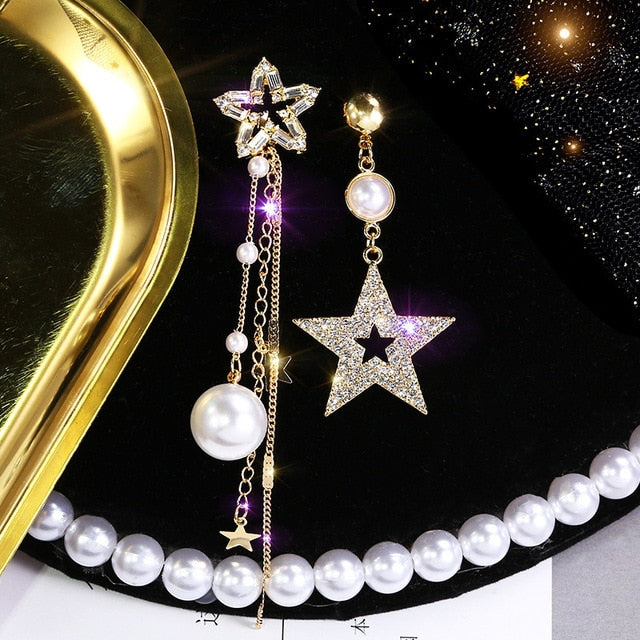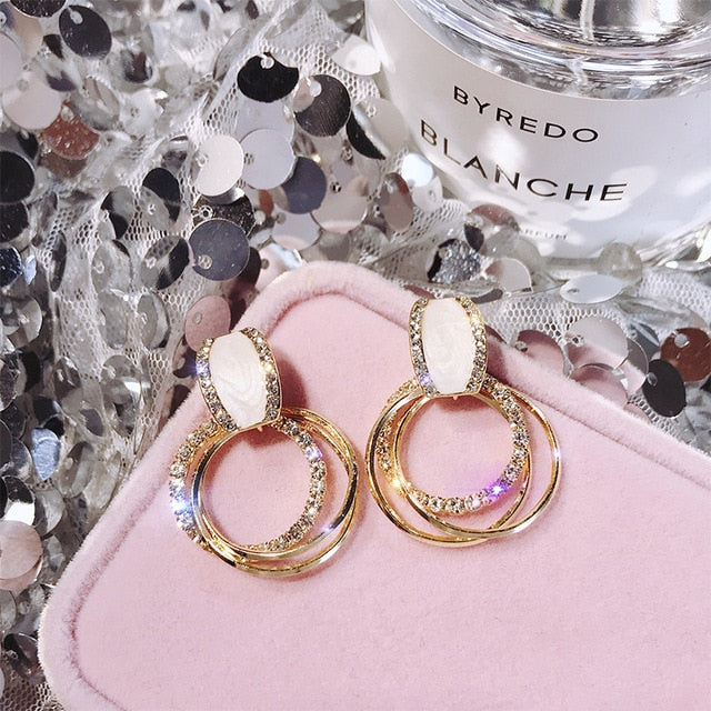 2019 New Crystal Pearl Tassel Earrings Female Long Paragraph Geometric Pendant Earrings Wedding Fashion Jewelry Jewelry Gifts