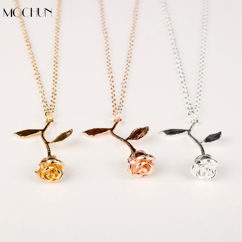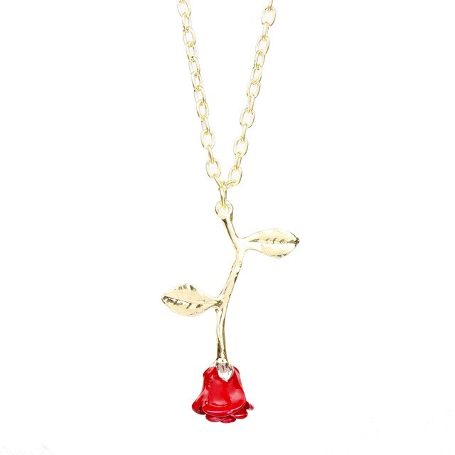 MQCHUN 3D Rose Halskette, Personalisierte Charme Halskette Schluss Rose Blume Schönheit und das Biest Schmuck Frauen Mädchen Party Geschenk